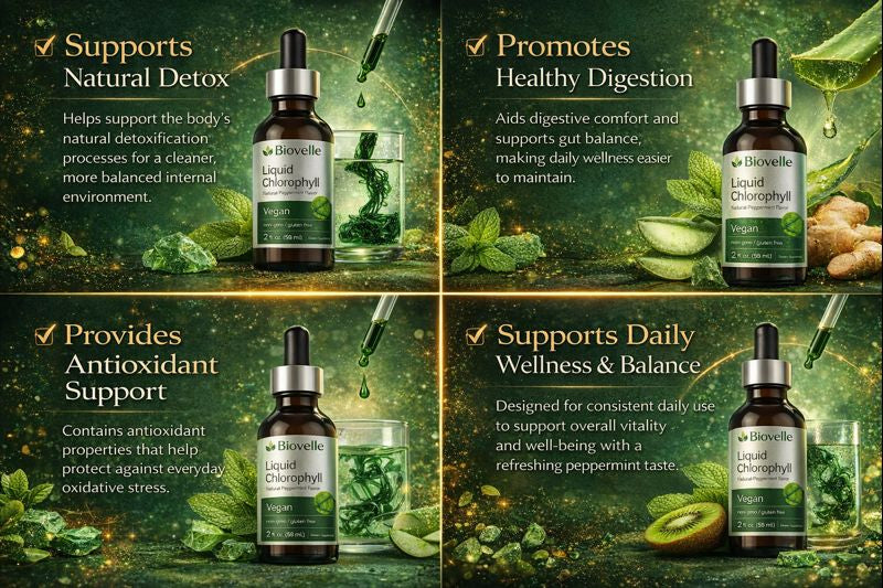Liquid chlorophyll is a plant-based supplement derived from green plants. It’s commonly used as part of daily wellness routines to support overall balance, digestion, and antioxidant intake.