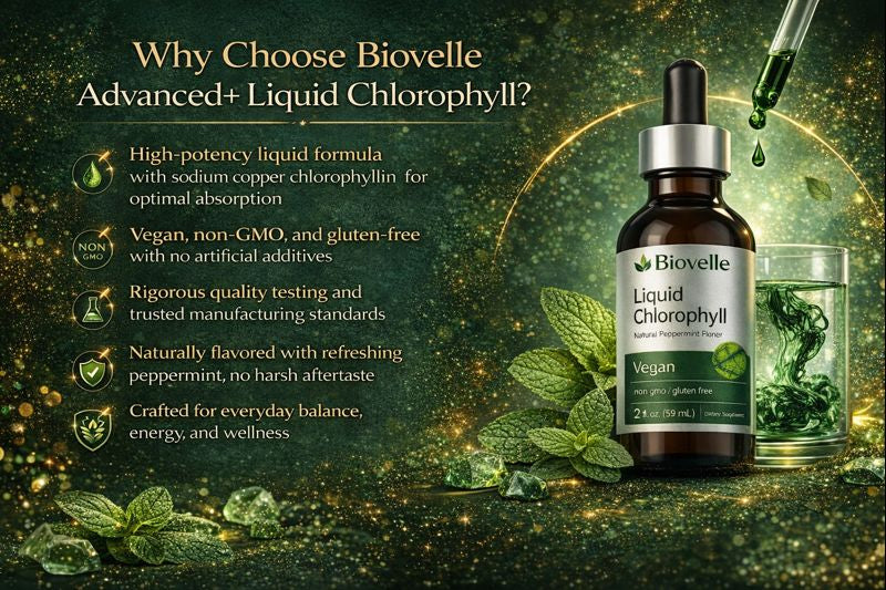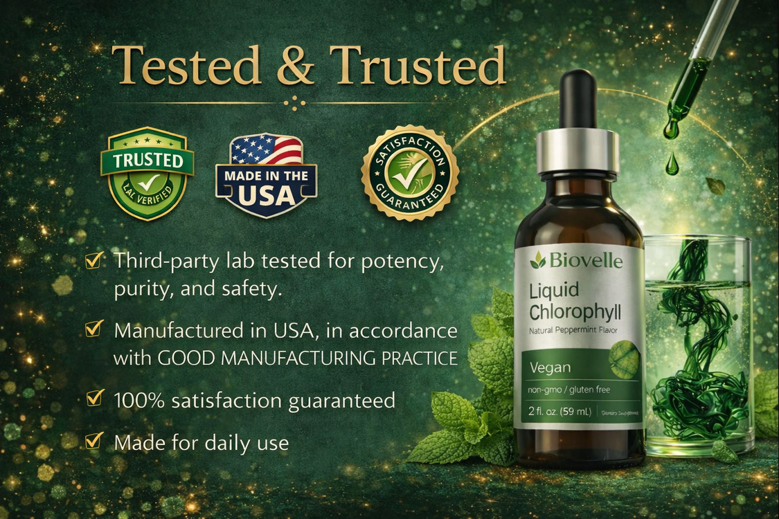 Biovelle is created with quality you can feel good about. Our liquid chlorophyll is third-party tested and carefully produced to meet high standards of safety and consistency—so you can support your wellness routine with confidence.